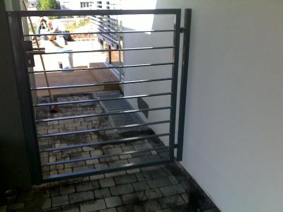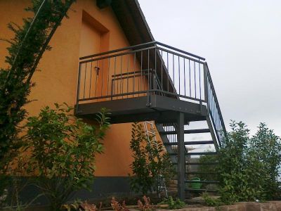 Stahlgeländer Verzinkt und Pulverbeschichtet. Füllungen aus Rundstahl mit Rauten.