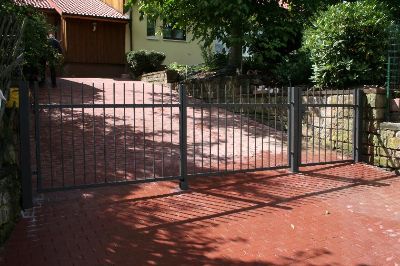 Tor aus zwei Flügeln verzinkt und zweifarbig pulverbeschichtet