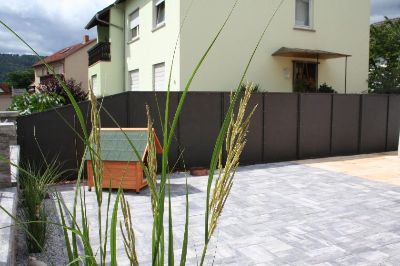 Zaun aus Lochblech in einem Stahlrahmen eingefasst