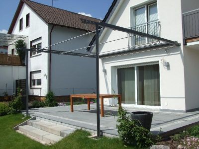 Konstruktion für Markisentuch aus T Eisen verzinkt und pulverbeschichtet.