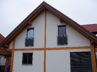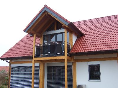 Französicher Balkon mit Glascheiben als Absturzsicherung.