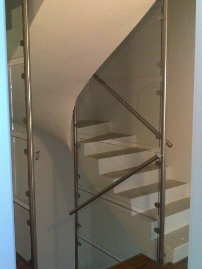 Trennwand im Treppenhaus aus Sicherheitsglas.