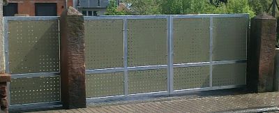 Tor aus Stahl Oberfläche verzinkt mit Lochblech und Pulverbeschichtung